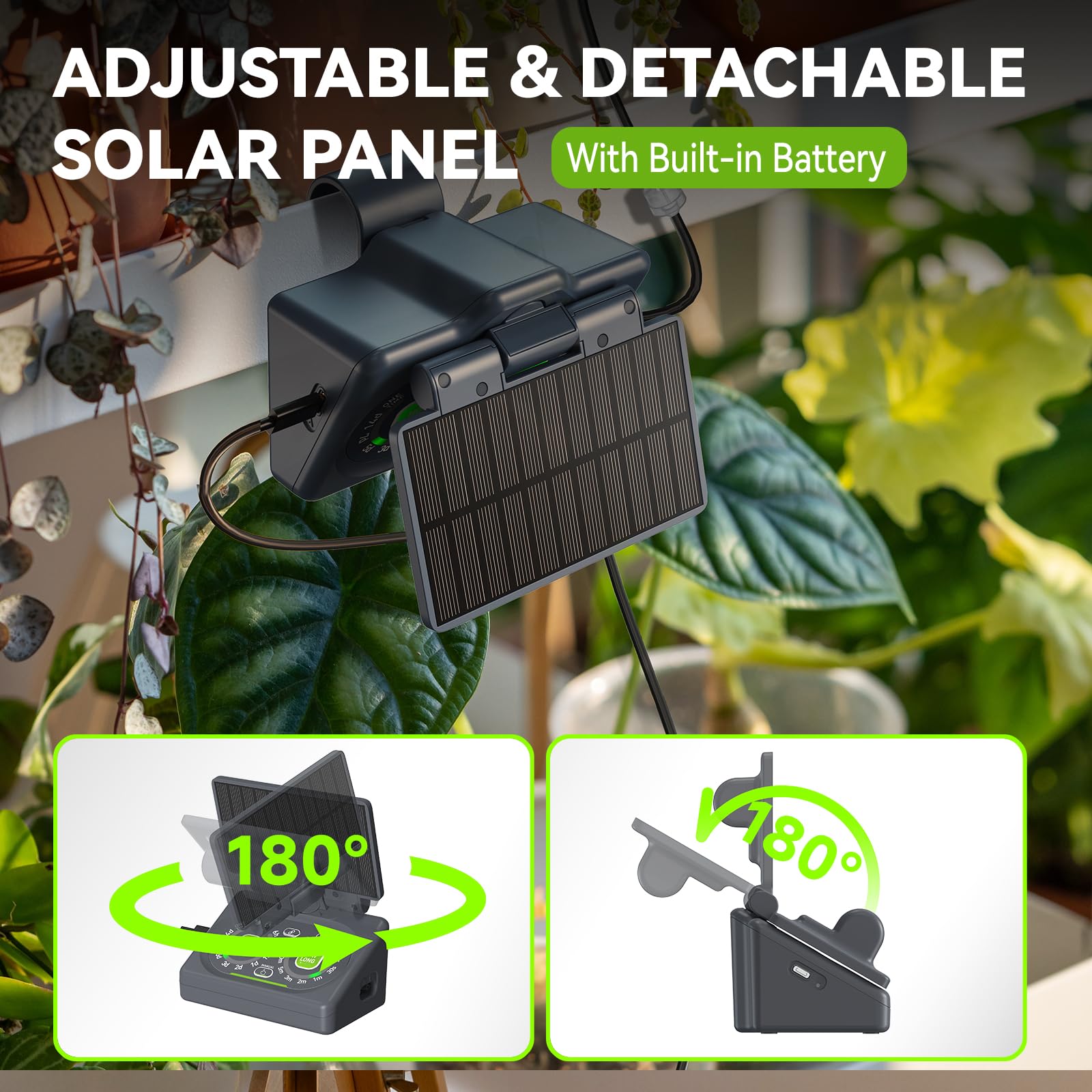 Equipped with dual power sources, the RAINPOINT watering system brings sustainability into the mix. You can harness the sun’s energy by plugging in the detachable solar panel, or opt for USB charging when the sun isn’t shining. This thoughtful design means your watering needs are met continuously, whether your device is basking in sunlight on your porch or nestled by a window.